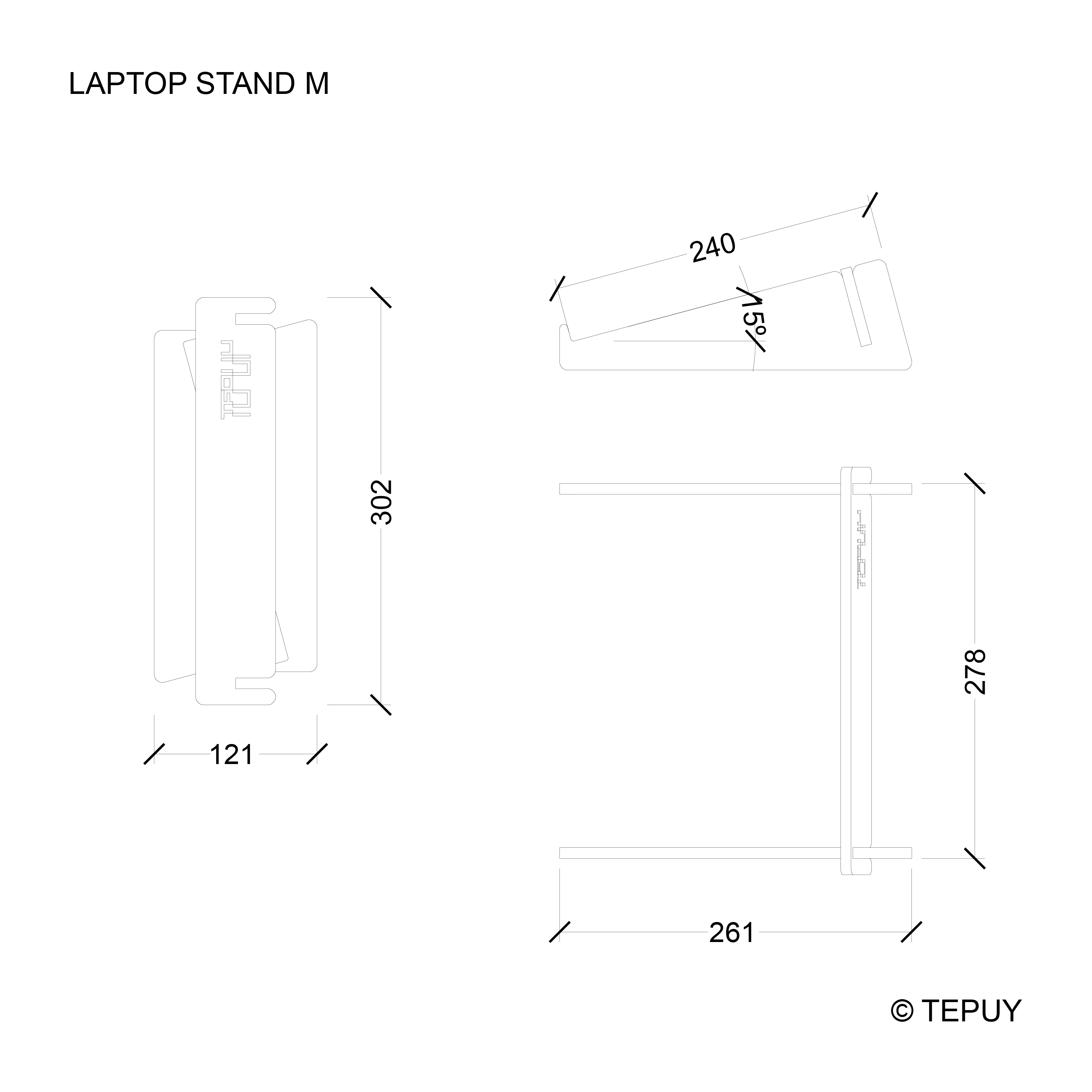 M – Screen 16” to 20” – 261 x 239 x 85 mm (w, d, h) – 196 g