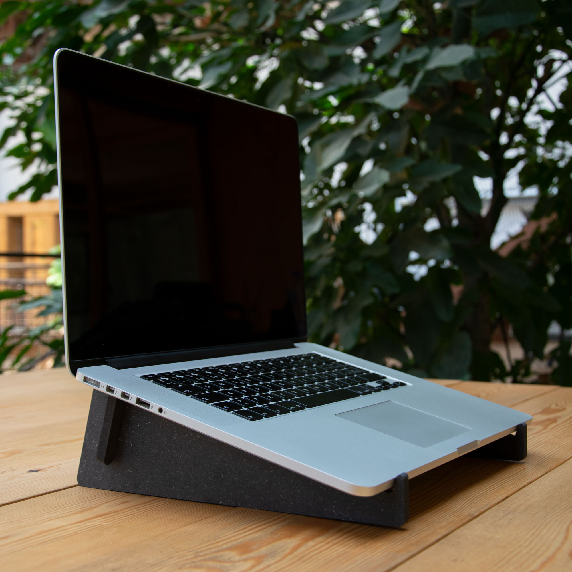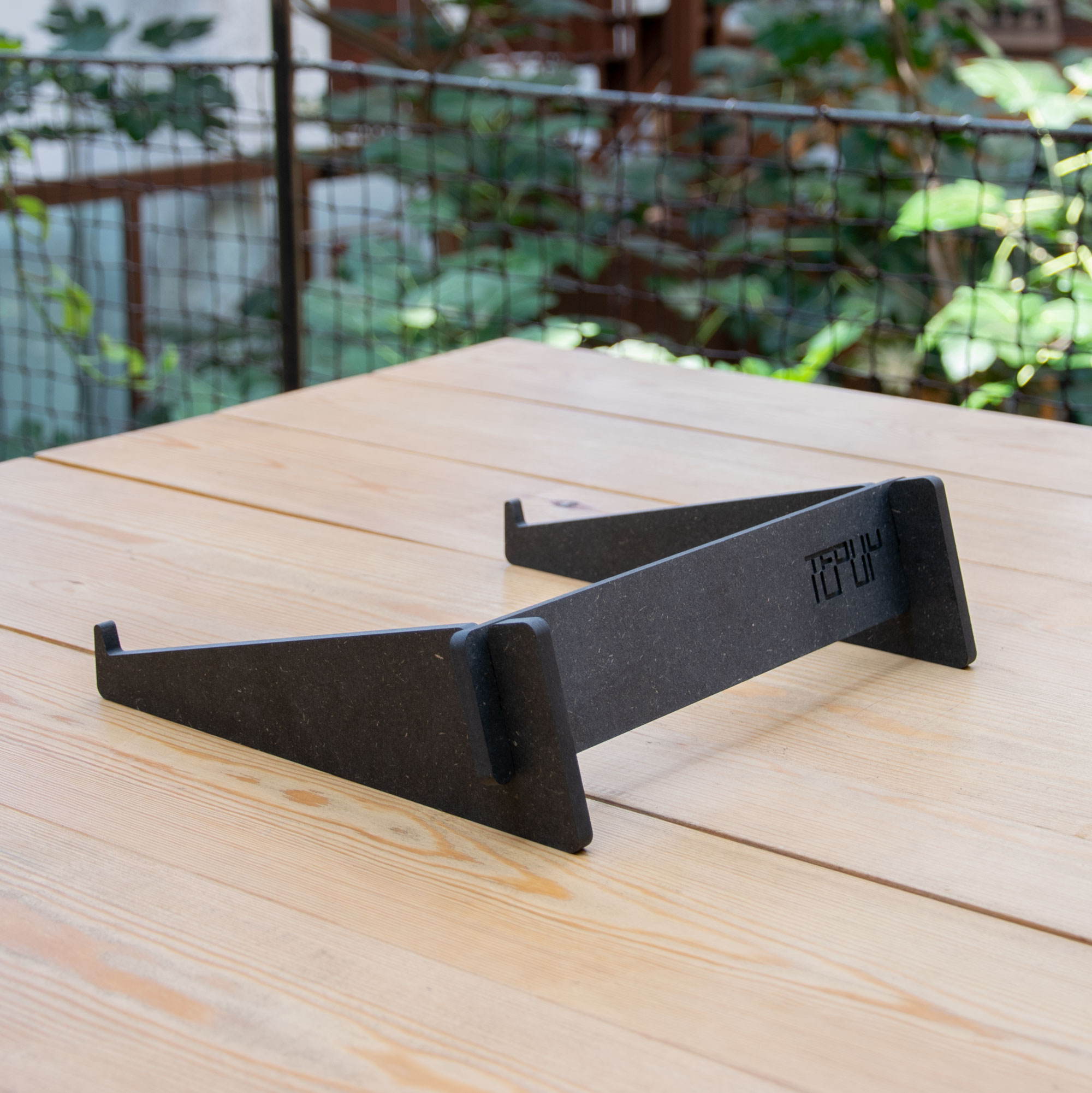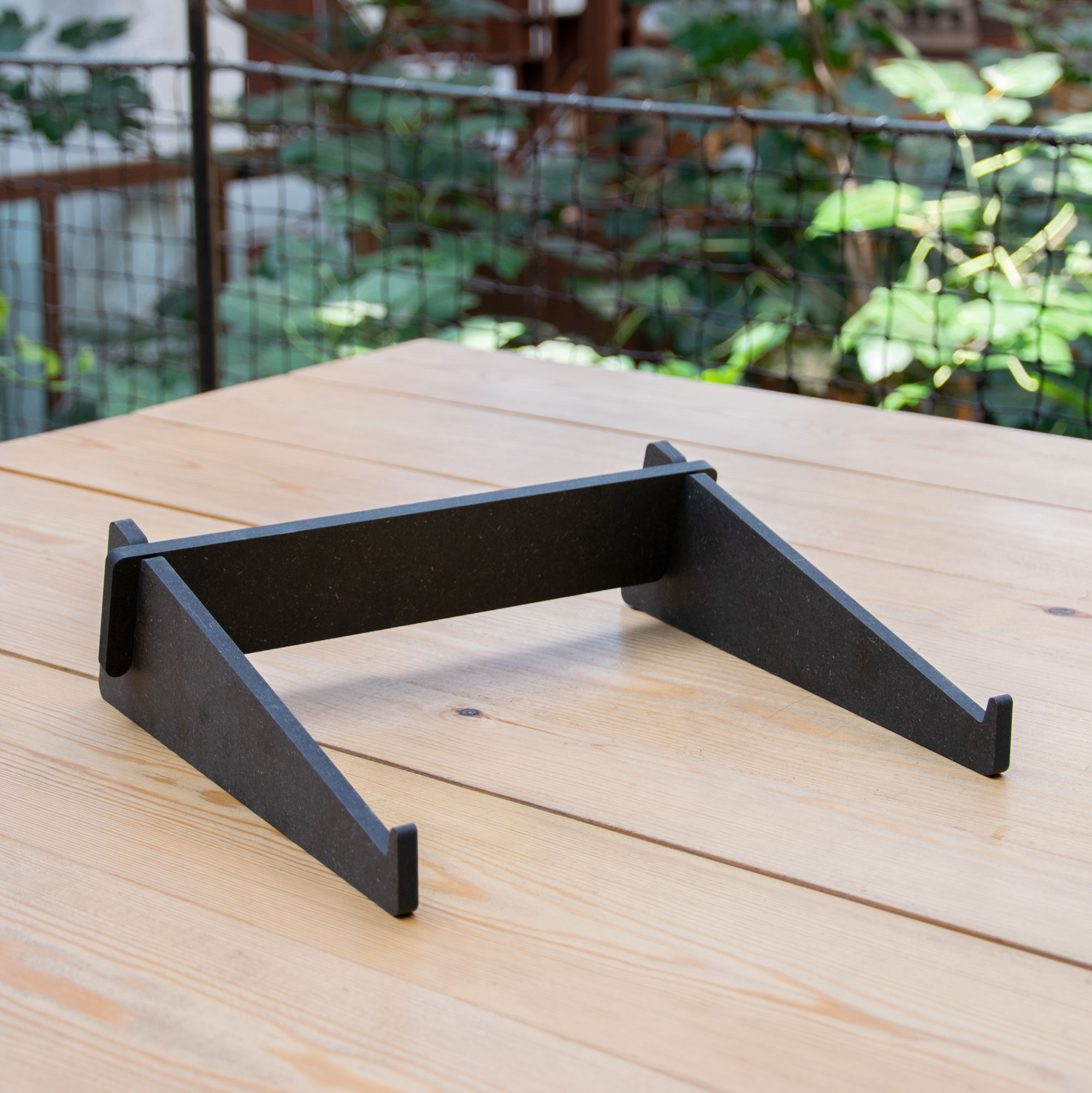 Lightweight portable wooden stand, designed for laptops, synths and for other divises with similar dimensions.