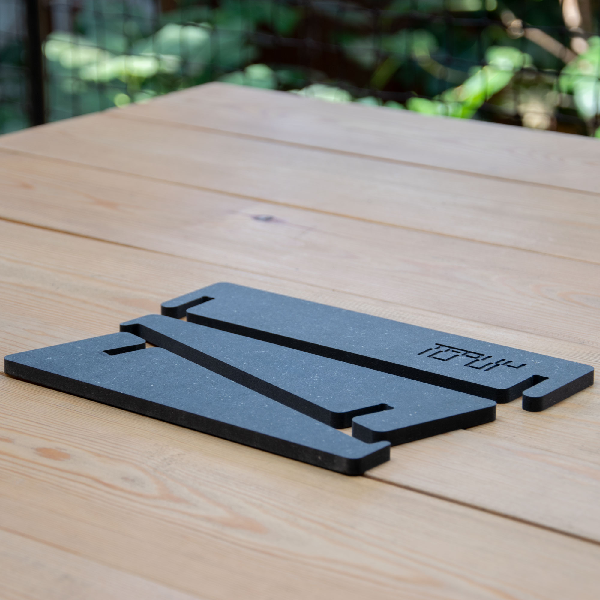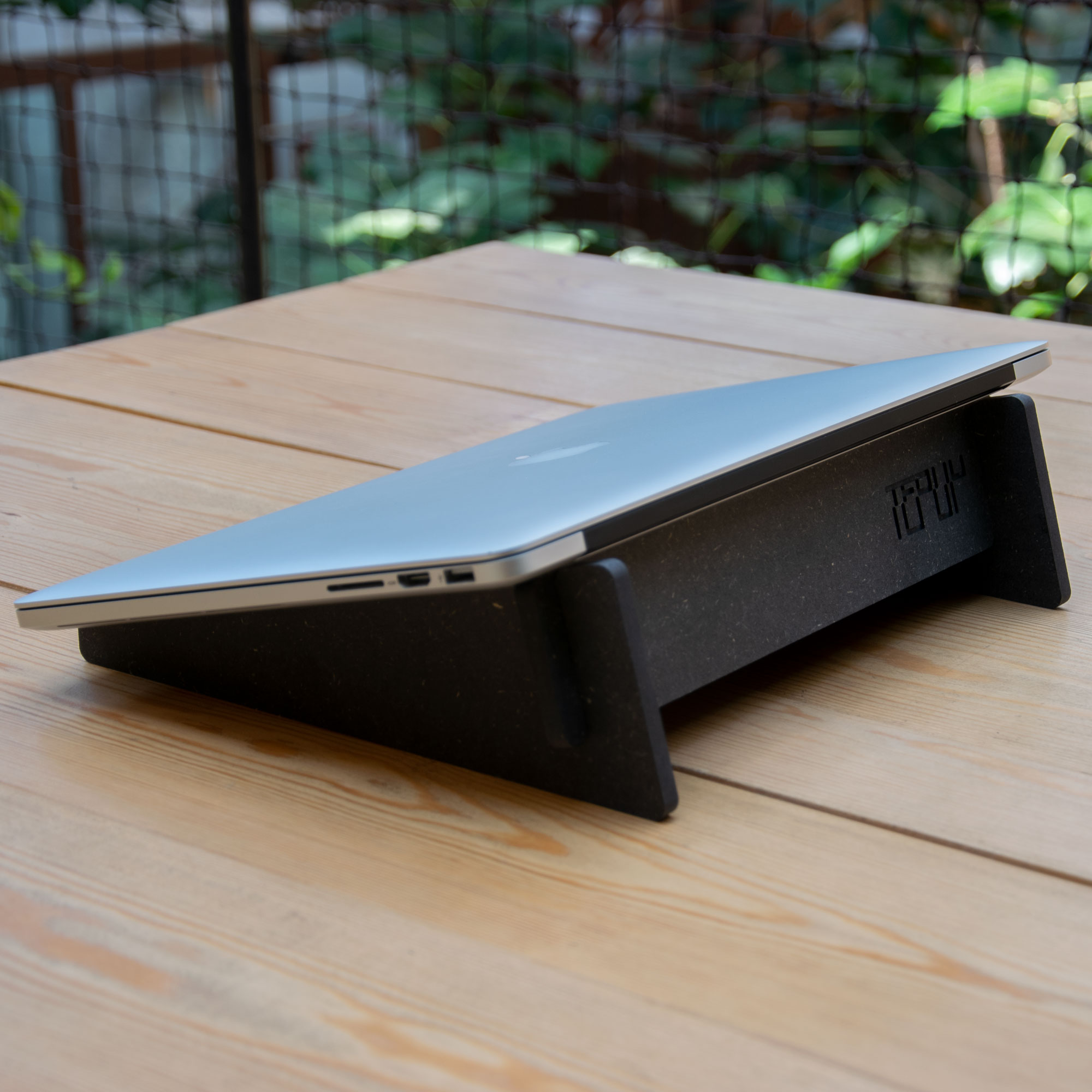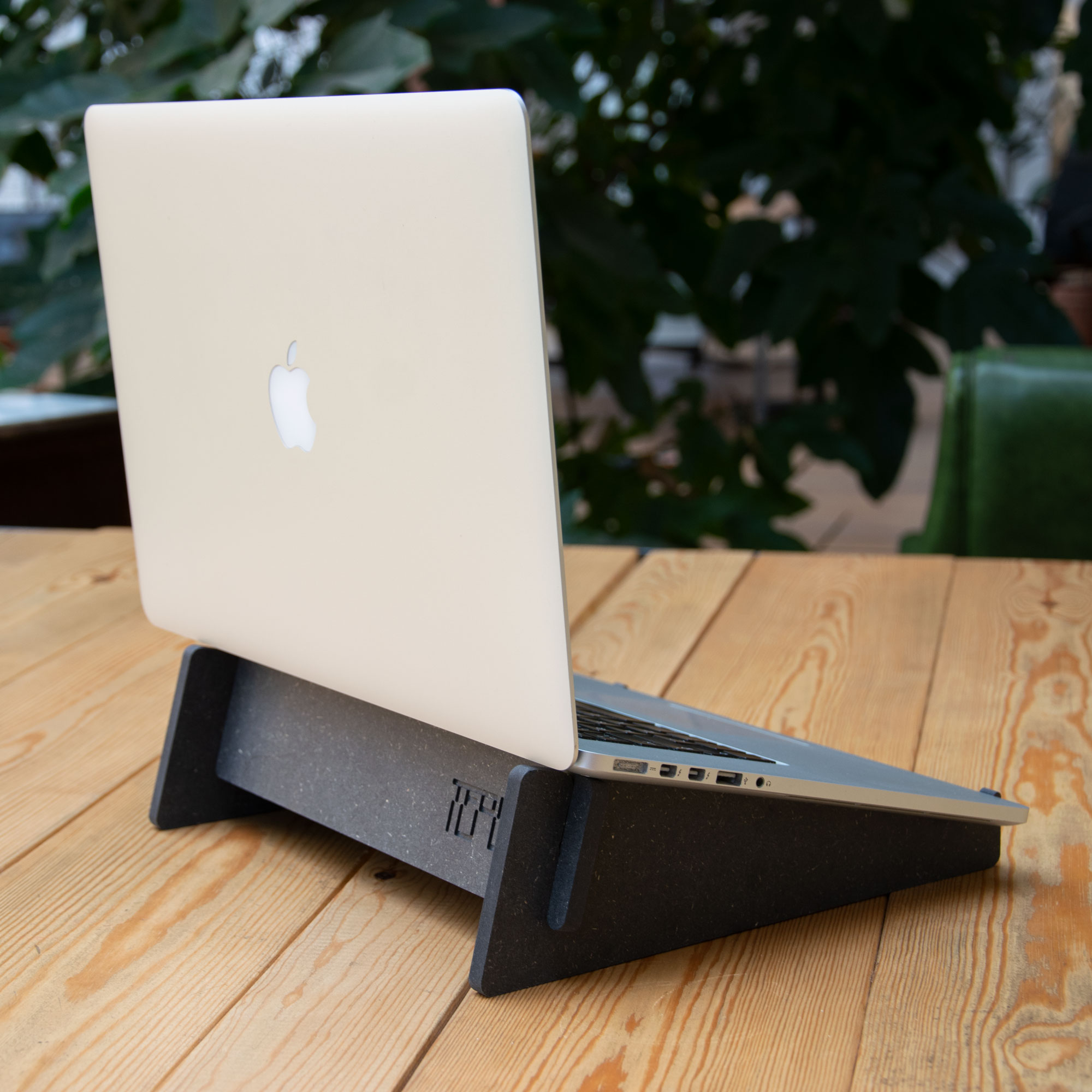 Lightweight portable wooden stand, designed for laptops, synths and for other divises with similar dimensions.